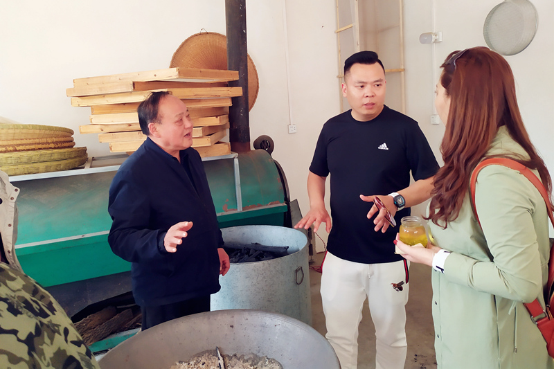 在這個秀美的山村里,周祖宏是個“名人”,他是周氏炒茶家族第四代傳人,憑著一手炒茶絕活,被河南省文化廳評為河南省省級非物質(zhì)文化遺產(chǎn)項目(信陽毛尖茶采制技藝)代表性傳承人。洛陽開元集團(tuán)一行來到周老師家里,董事長許明月與周老師親切交談,對制茶、品茶、信陽茶文化等一系列問題做了相互交流。在手工茶坊里集團(tuán)員工們也興致高昂地觀摩了炒茶師傅高超的手藝,手工炒茶可以使茶的營養(yǎng)成分更高,口感上偏濃,更加耐泡。大家品的是茶,吐出的是都市的困頓與繁雜。在300余畝的茶園中,縷縷茶香沁人心脾,在采茶工的引領(lǐng)下,全體員工愜意自得地體驗(yàn)采茶的樂趣。